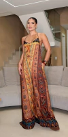 Renove seu estilo com este macacão exclusivo, que une o charme da estampa boho com a elegância de um design fluido e moderno. Ideal para quem busca conforto, leveza e personalidade em uma só peça.
